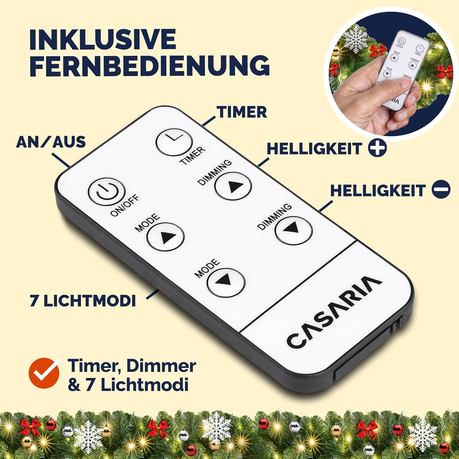 - GIRLANDE INKL. DEKO - Mit der dekorierten 5m LED Weihnachtsgirlande von CASARIA zauberst du im Handumdrehen weihnachtlichen Glanz in dein Zuhause. Zum Dekorieren werden 36x Christbaumkugeln, 10x Schneeflöckchen und 10x Schleifen mitgeliefert.