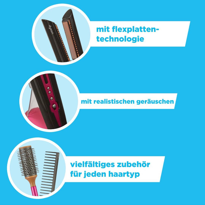 Casdon 73352 Dyson Corrale Styling-Set | Sichere Spielzeug-Glätteisen für Kinder ab 3 Jahre | Mit re