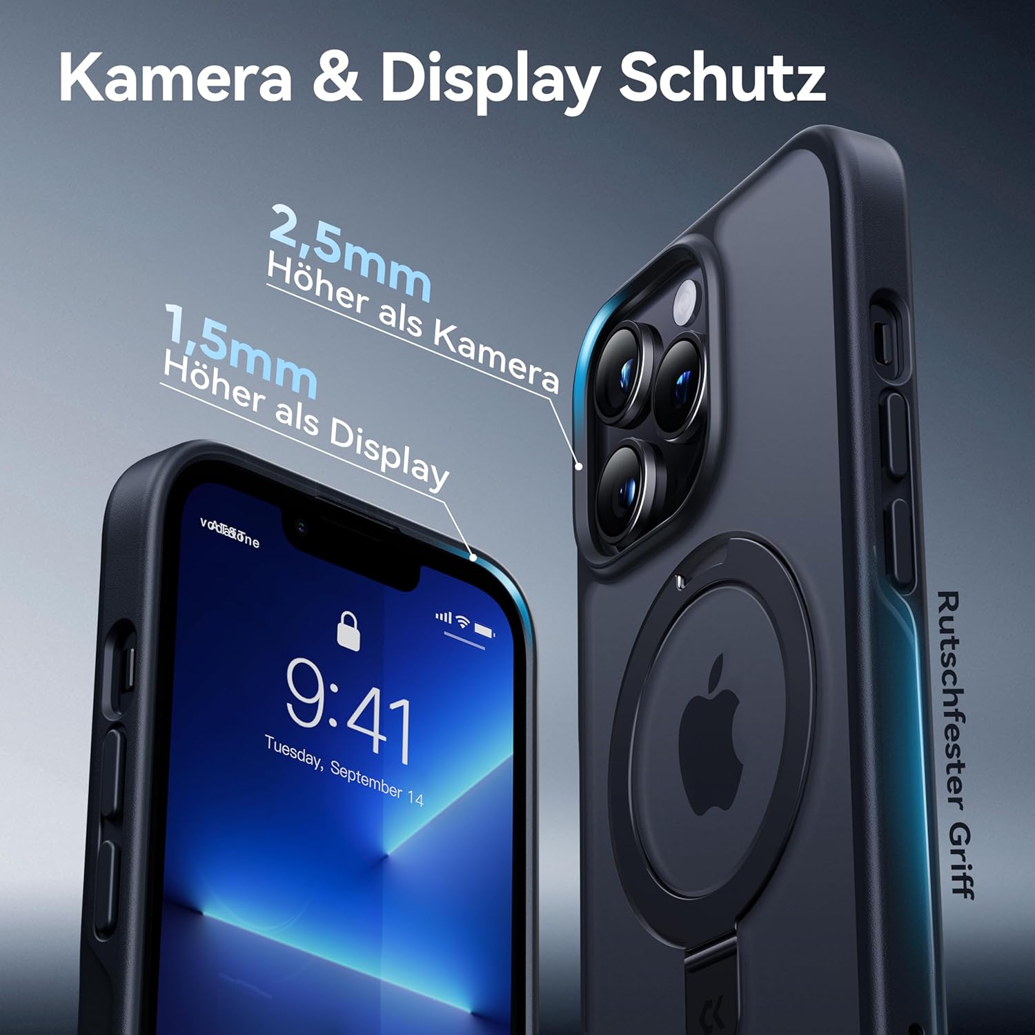 • [2024 Neu - Militärischer Schutz]: Diese Schutzhülle für iPhone 13 Pro hat strenge Falltests gemäss MIL-STD-810H bestanden: aus einer Höhe von 2,44 Metern und aus 26 verschiedenen Winkeln, insgesamt 5500 Stürze. Der erhöhte Kamerabereich um 2,5 mm