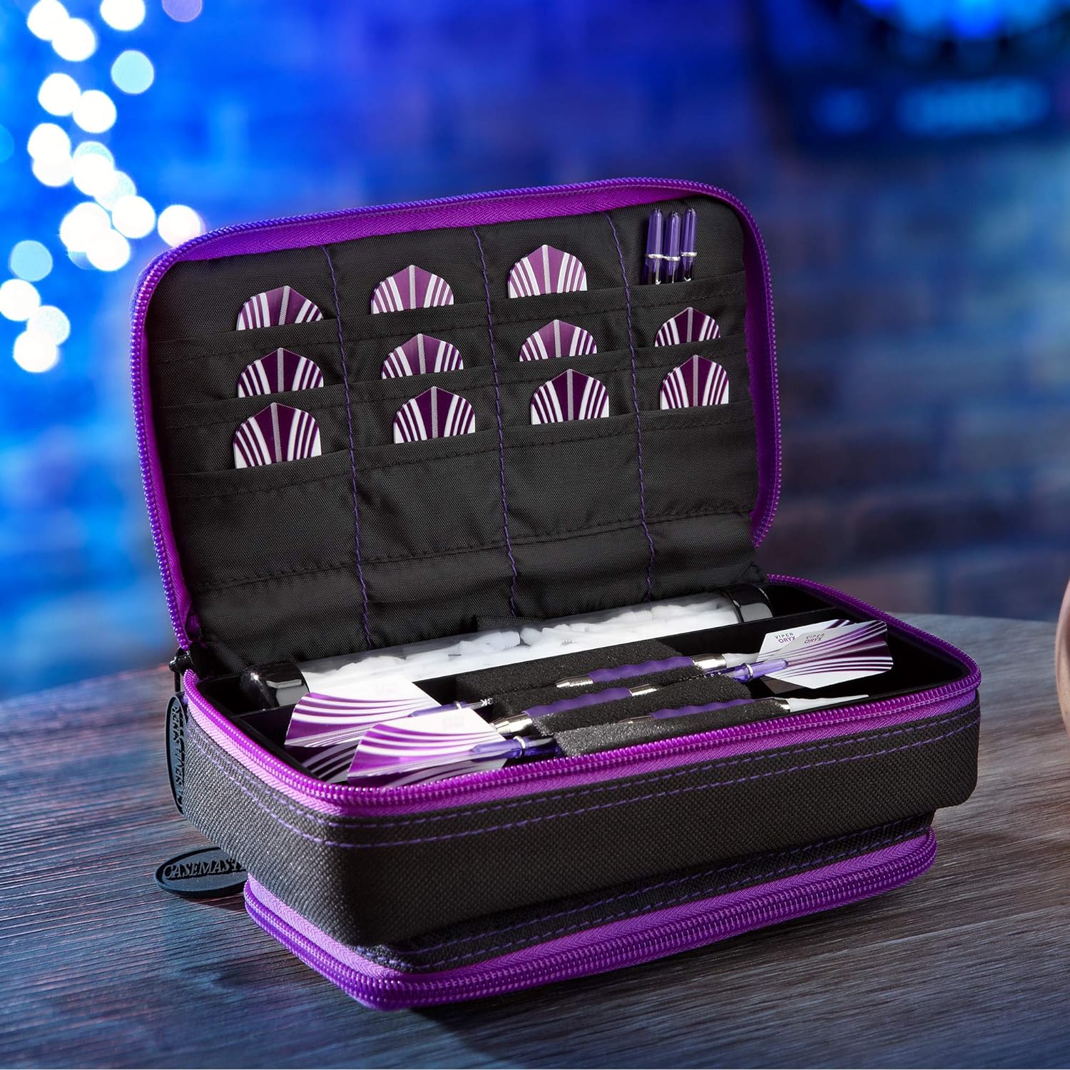 - 12 Fächer für zusätzliche Flights, Schäfte und Zubehör; Kunststoffschlauch für Ersatzspitzen oder Schäfte mit Deckel an jedem Ende für einfachen Zugang.