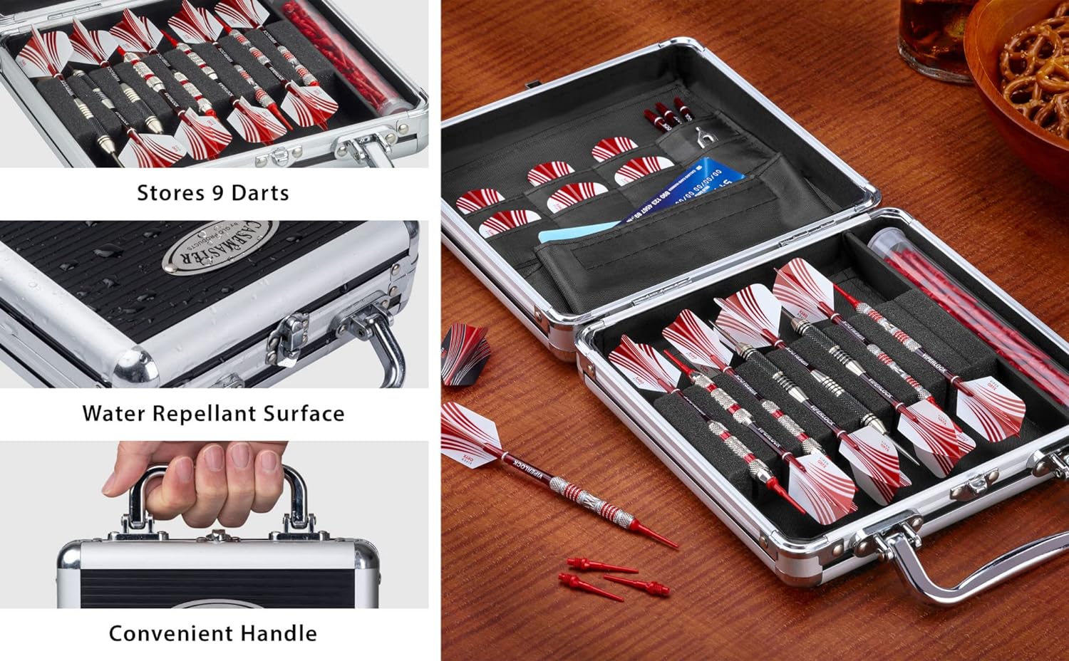 - 6 Taschen für extra Flights und Schlüssel; 3 mini-sleeves für extra Schäfte oder soft-tips