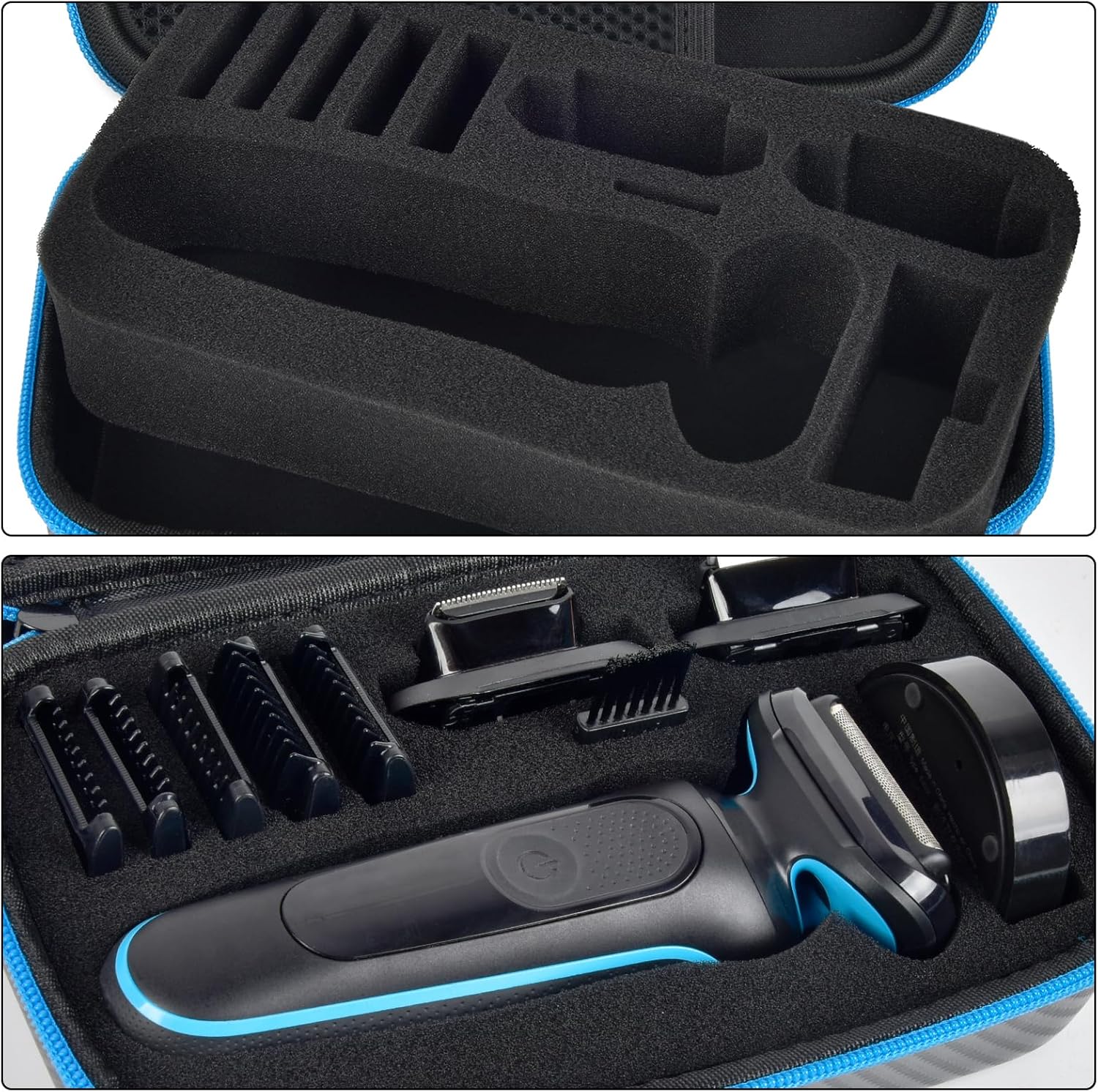 • Massgefertigte Schaumstoffeinlage für ultimativen Schutz: Der Schaumstoff ist genau auf die Braun Series 5 Elektrorasierer (Modelle 5150cs & 5118s), Bartschneider, Body Groomer, Ladestation und alle 5 Trimmkämme zugeschnitten. Diese Passform verhindert