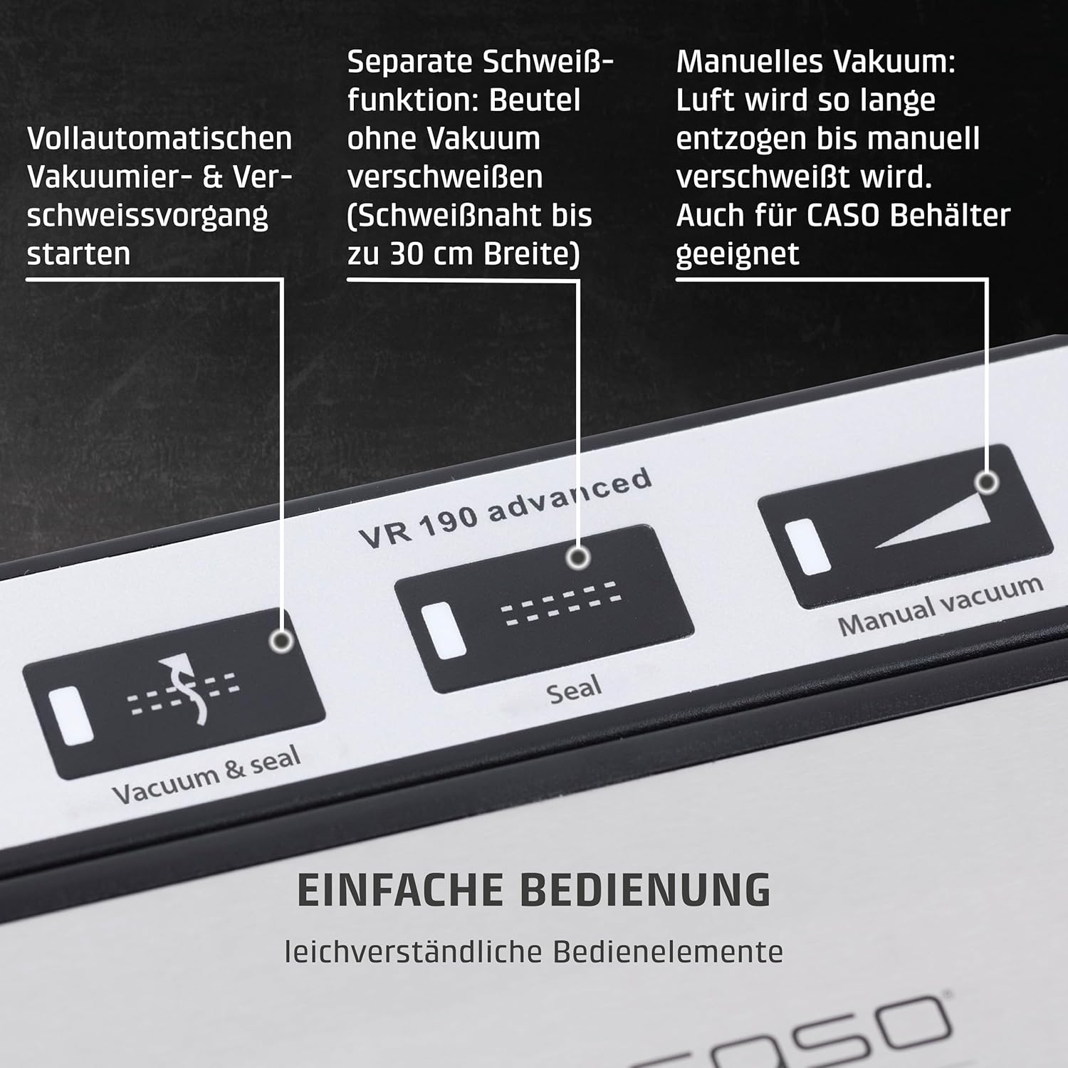 - Manuell regulierbare, stufenlose Vakuumstärke: ideal für empfindliche Lebensmittel