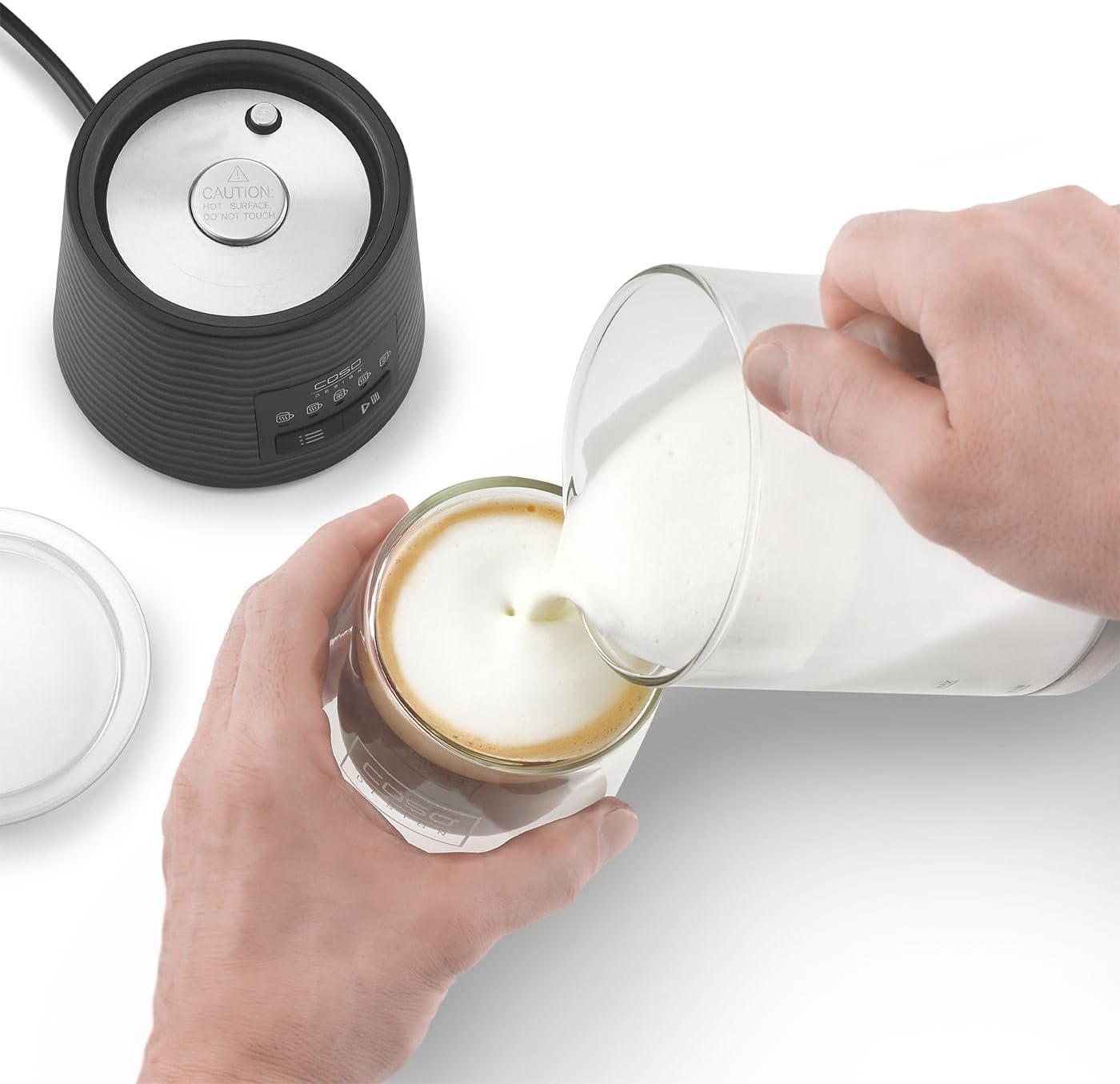- Hochwertiges Design: Abnehmbarer Milchschaumbehälter aus Glas und transparenter Milchaufschäumer für präzises Ausgiessen und Beobachtung der Konsistenz.