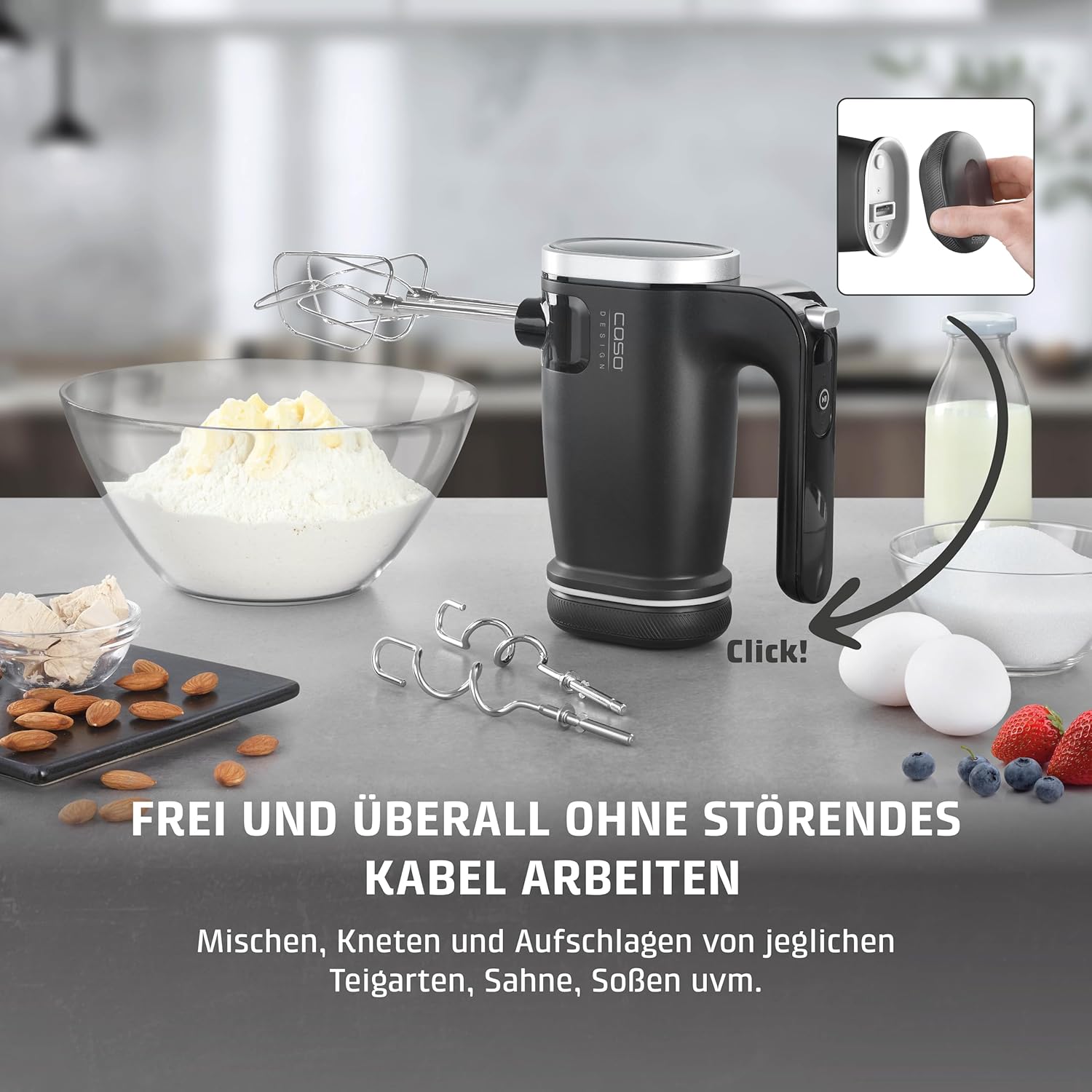 - Flexibles Akkusystem: Magnetisch wechselbarer Akku, kompatibel mit allen akkubetriebenen Küchengeräten der „CASO Click-Series“, inkl. abnehmbarem Lithium-Ionen-Akku (11,1V, 2.000mAh) mit LED-Statusanzeige und Ladekabel.