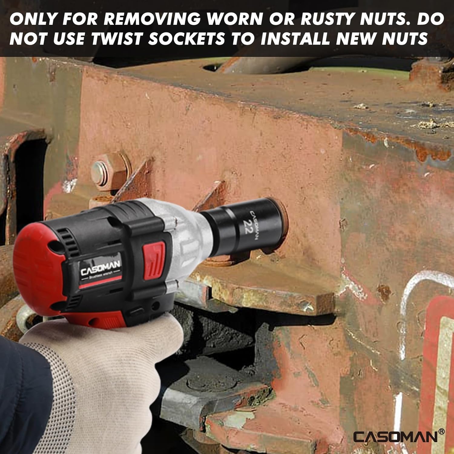 - Einfach zu bedienen, Sie müssen nur einen Hammer verwenden, um das Entfernungswerkzeug auf die beschädigte Mutter zu schlagen, dann wählen Sie den 1/2 Zoll Vierkantantrieb Schraubenschlüssel, um die Mutter zu lösen, um diese verrosteten Muttern zu