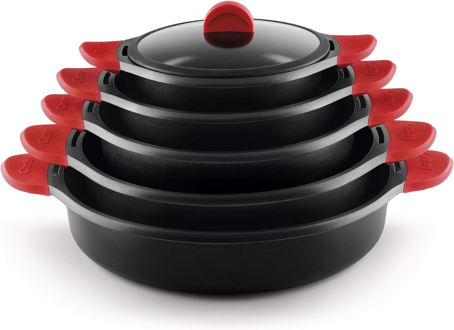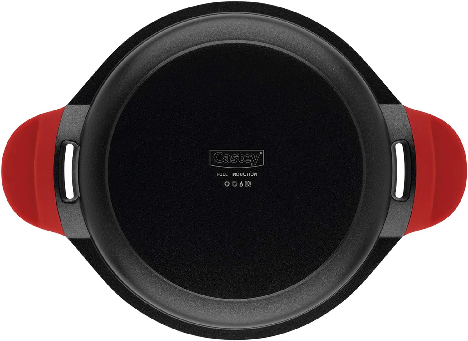 - Niedrige Stielkasserolle aus drei Schichten Edelstahl mit Silikongriff - 14cm.