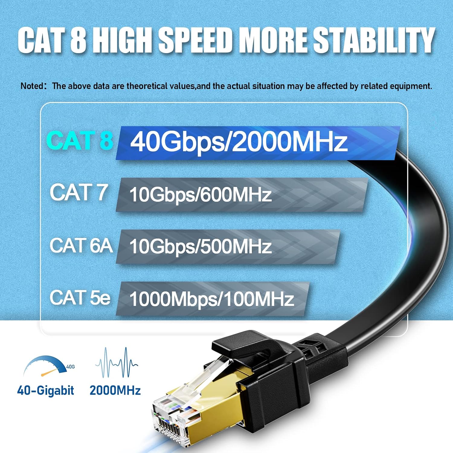 - ♚【Überdrehzahl Netzwerkkabel】Cat 8 unterstützt Datenübertragungsgeschwindigkeiten bis zu 2000MHz und 40Gbps, wodurch Netzwerküberlastung, Latenz und Latenz vermieden werden. Cat 8 ist schneller und leistungsfähiger als Cat 7/Cat 6.