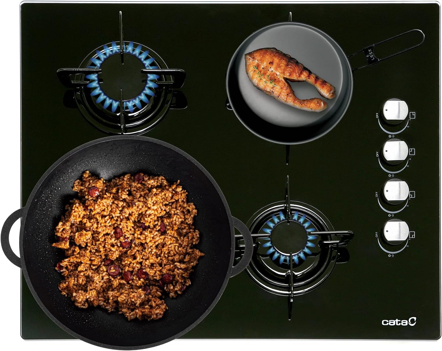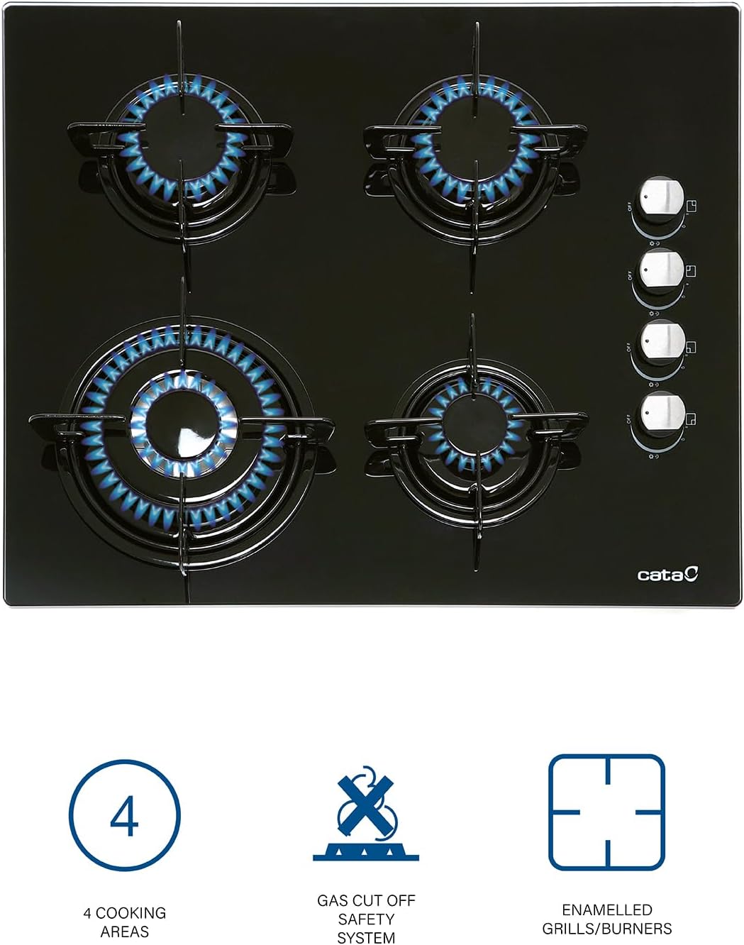 - EMAILLIERTE BRENNER UND GRILLROSTE: Die schwarze Glasoberfläche mit emaillierten Brennern und Gittern verleiht Ihrer Küche einen Hauch von Klasse und Raffinesse. Er hat einen Gaseinlass auf der rechten hinteren Seite mit Ventil für mehr Sicherheit.