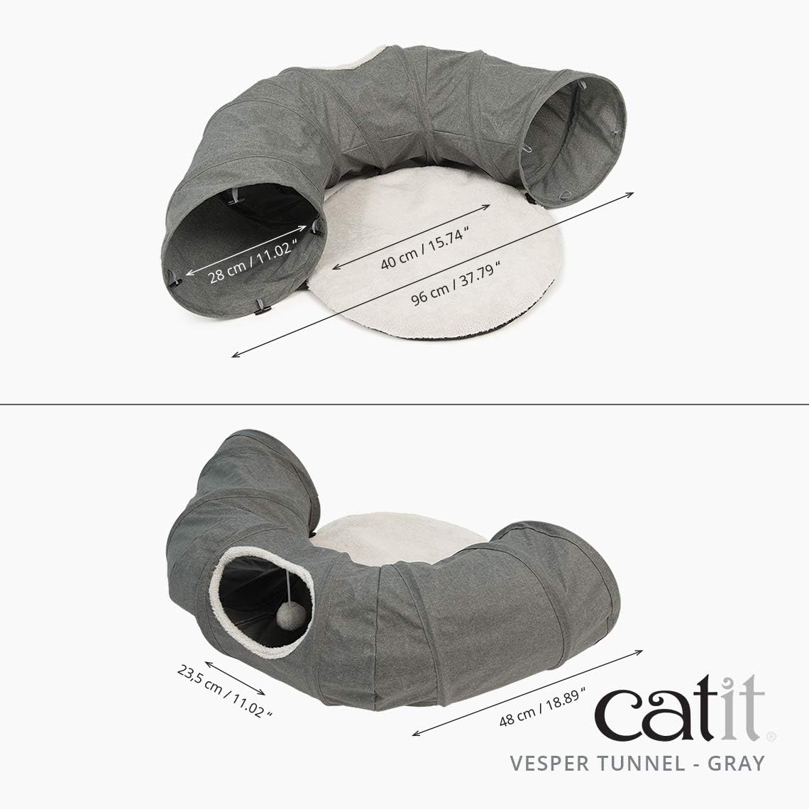 Catit 41996 Vesper Tunnel, für Katzen, mit Schlafkissen, grau , Black, Black