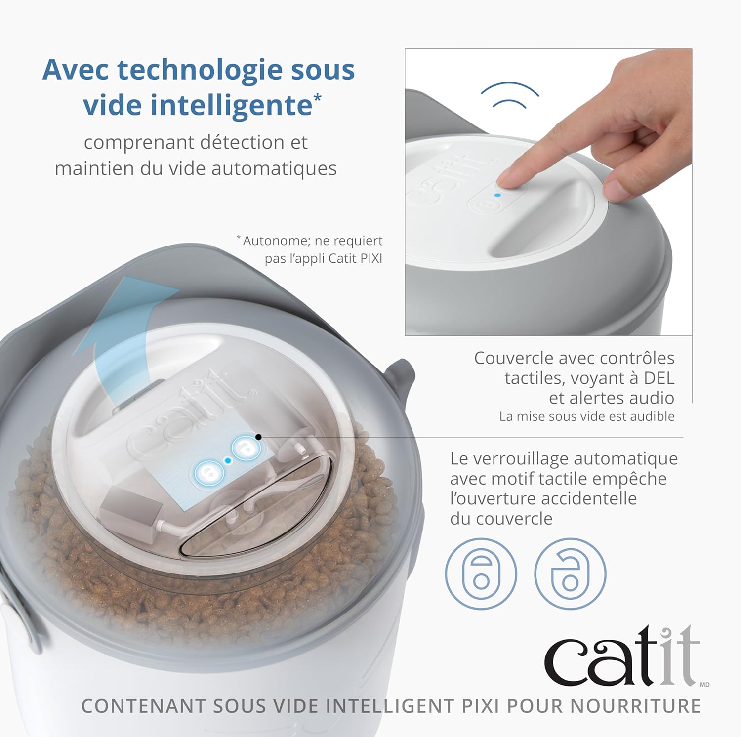 - Die elektronische Abdeckung und das Futterreservoir sind für eine einfache Reinigung separate Teile