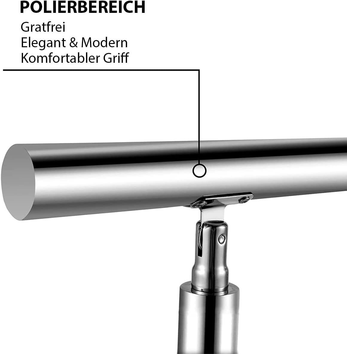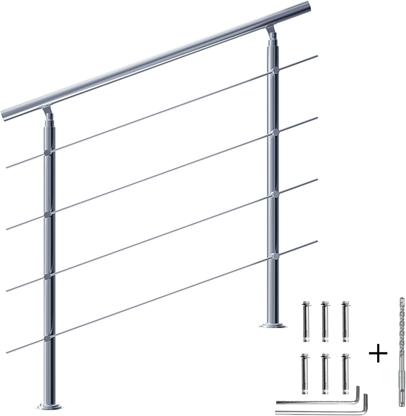CAVATINY Edelstahl Handlauf Geländer für Treppen Brüstung Balkon mit 4 Querstreben - Innen und Ausse