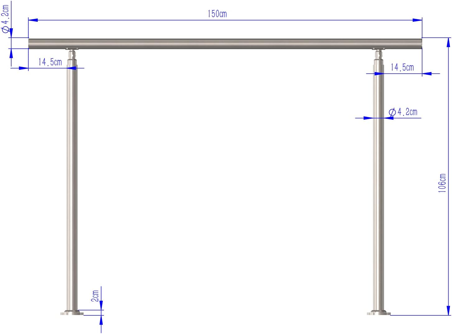 • Geländer Länge: 150 cm, Querstrebe: 0, Höhe: 106 cm, Handlauf und Pfosten: ø42 mm