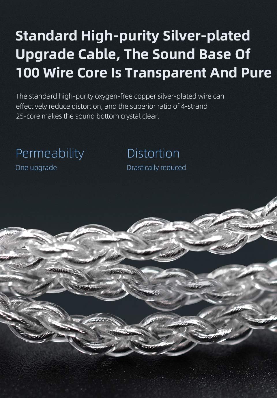 - Standard-hochreines, versilbertes Upgrade-Kabel, die Klangbasis des 100-Drahtkerns ist transparent und rein, der Standard-hochreine, sauerstofffreie Kupfer-versilberte Draht kann effektiv Verzerrungen reduzieren, und das 眉berlegene Verh盲ltnis von