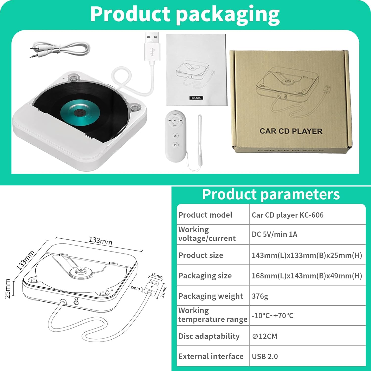 - 【Anti-Shock, Breakpoint-Speicherfunktion】 Der tragbare Auto-CD-Player ist mit einem autospezifischen Chip ausgestattet, um eine bessere Lesbarkeit, Anti-Interferenzen, Kompatibilität, Rauschunterdrückung und Datenübertragung zu gewährleisten.