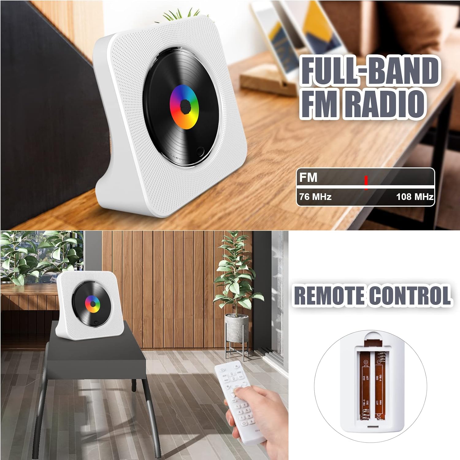 - Bluetooth CD Player: Wenden Sie die Bluetooth 5.0-Technologie auf diesem tragbaren Wand-CD-Player an, der eine grössere Signalreichweite, schnellere Verbindung und Übertragungsgeschwindigkeit bietet. Eingebaute Dual-Hi-Fi-Bluetooth-Lautsprecher, die