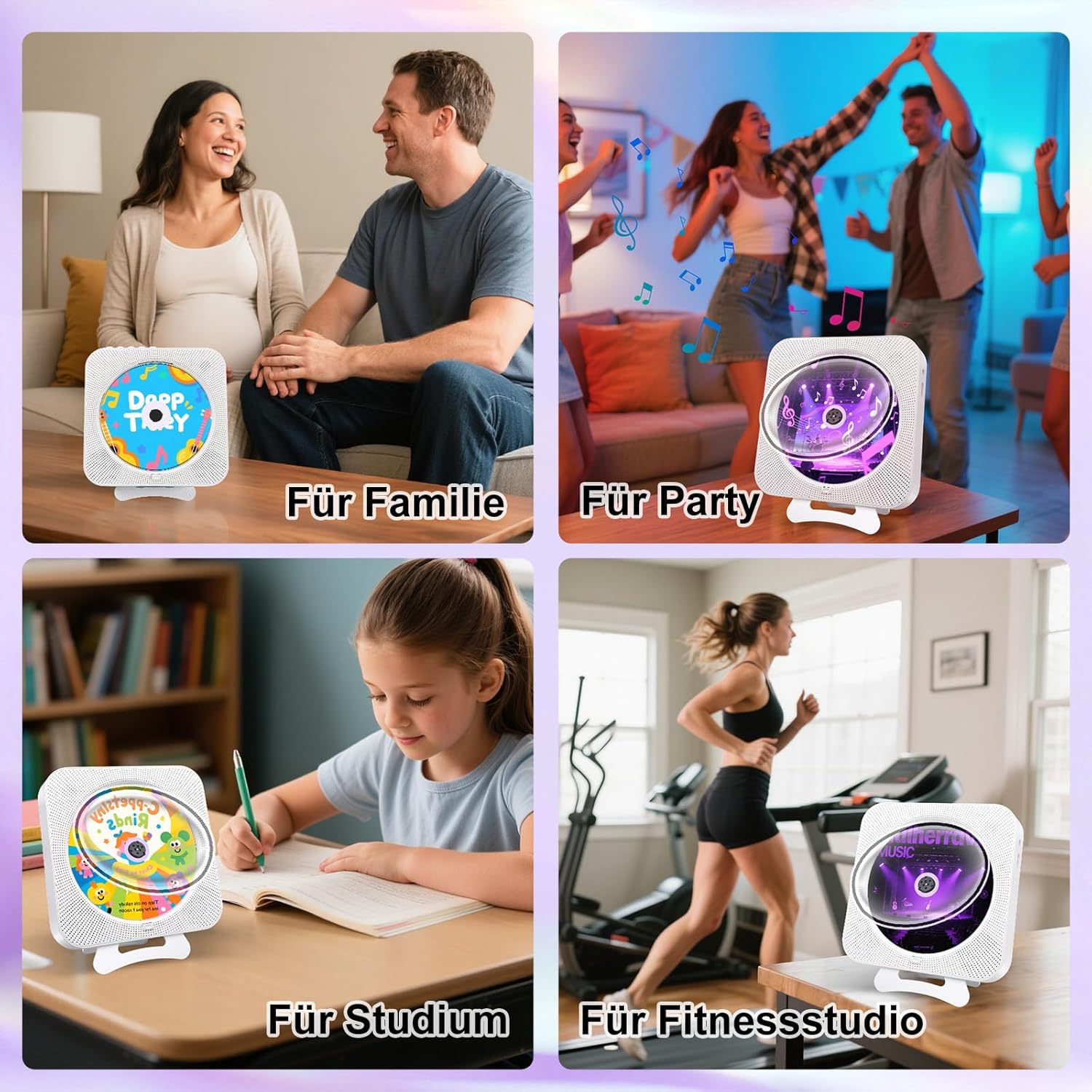 - 【Aktualisierung CD Player】 Dieser CD Player kann arbeiten als: 1. Tragbarer CD Player; 2. FM Radio; 3. Bluetooth HiFi Lautsprecher; 4. Mini Home Boombox; 5. USB Laufwerk Player. Es kann ein ideales Geschenk sein. Geeignet für Musikgenuss, Sprachenlernen, Geburtsvorbereitung, Früherziehung und so weiter.