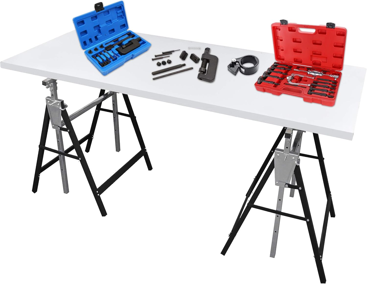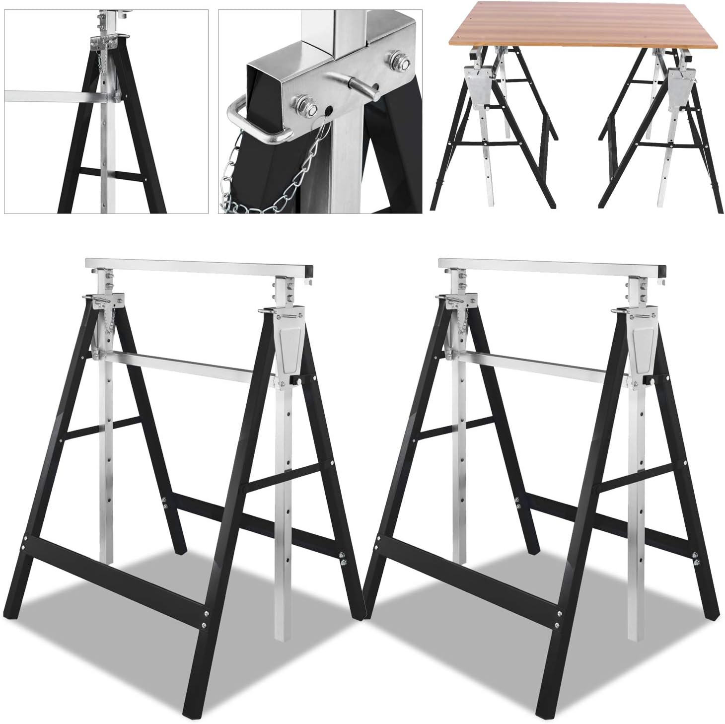 - đȘăSuper TragfĂ€higkeităDie GerĂŒstböcke sind aus Metall gefertigt, mit einer stabilen Struktur und starkem Halt. Jedes Klappbock-Paar hat eine TragfĂ€higkeit von 200 kg, so dass Sie auch schwere GegenstĂ€nde bedenkenlos auf den Arbeitsbock