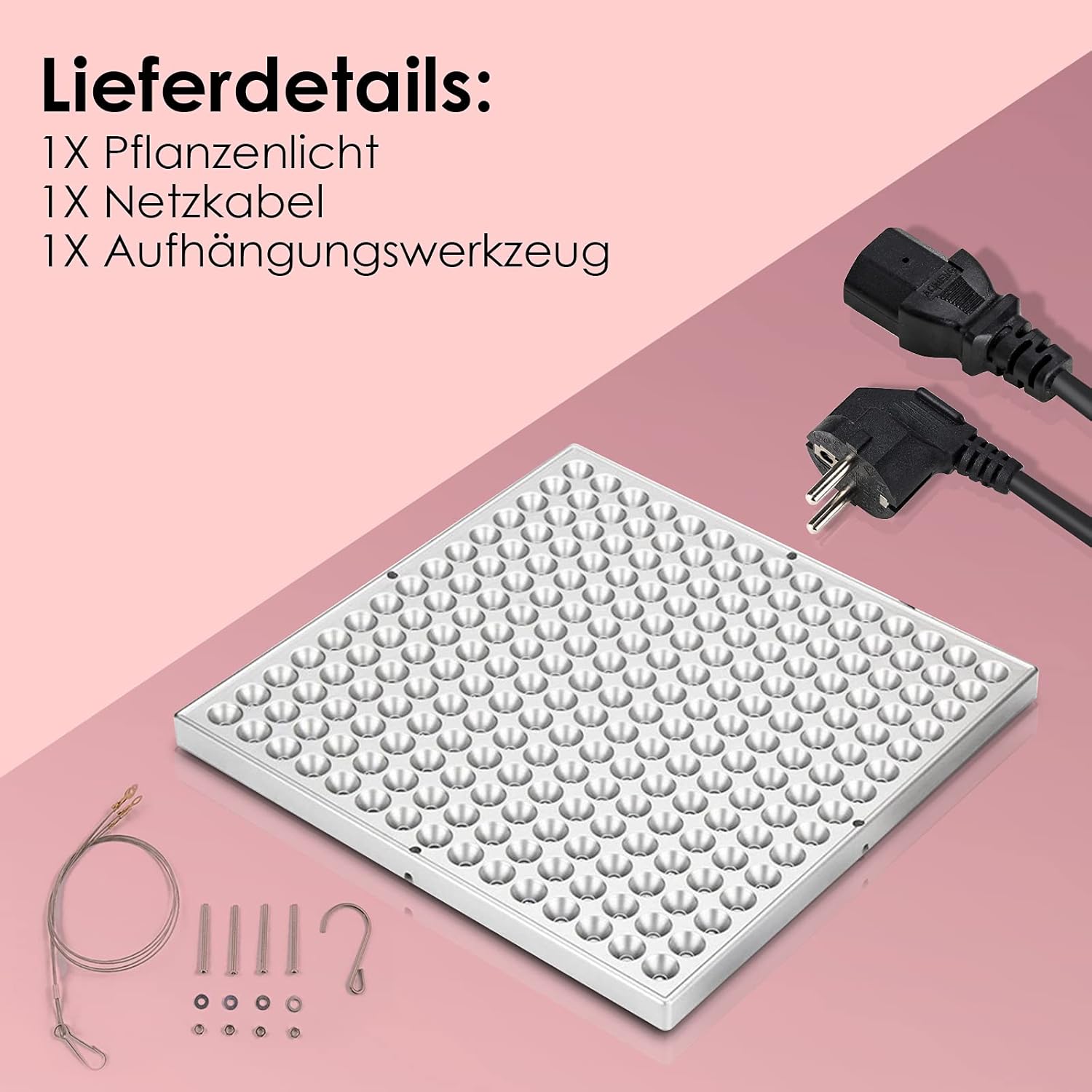 - 🌱DETAILS: Lampengrösse: 305 x 305 x 30 mm; 225 Lampenkugeln (165 rot und 60 blau); Gewicht: 1,18 kg; 1350 LM, Farbtemperatur. Empfohlener Beleuchtungsabstand: 40cm - 100cm. Beleuchtungsfläche: ca. 2m2. Mit Netzstecker. Kabellänge ca. 120cm.