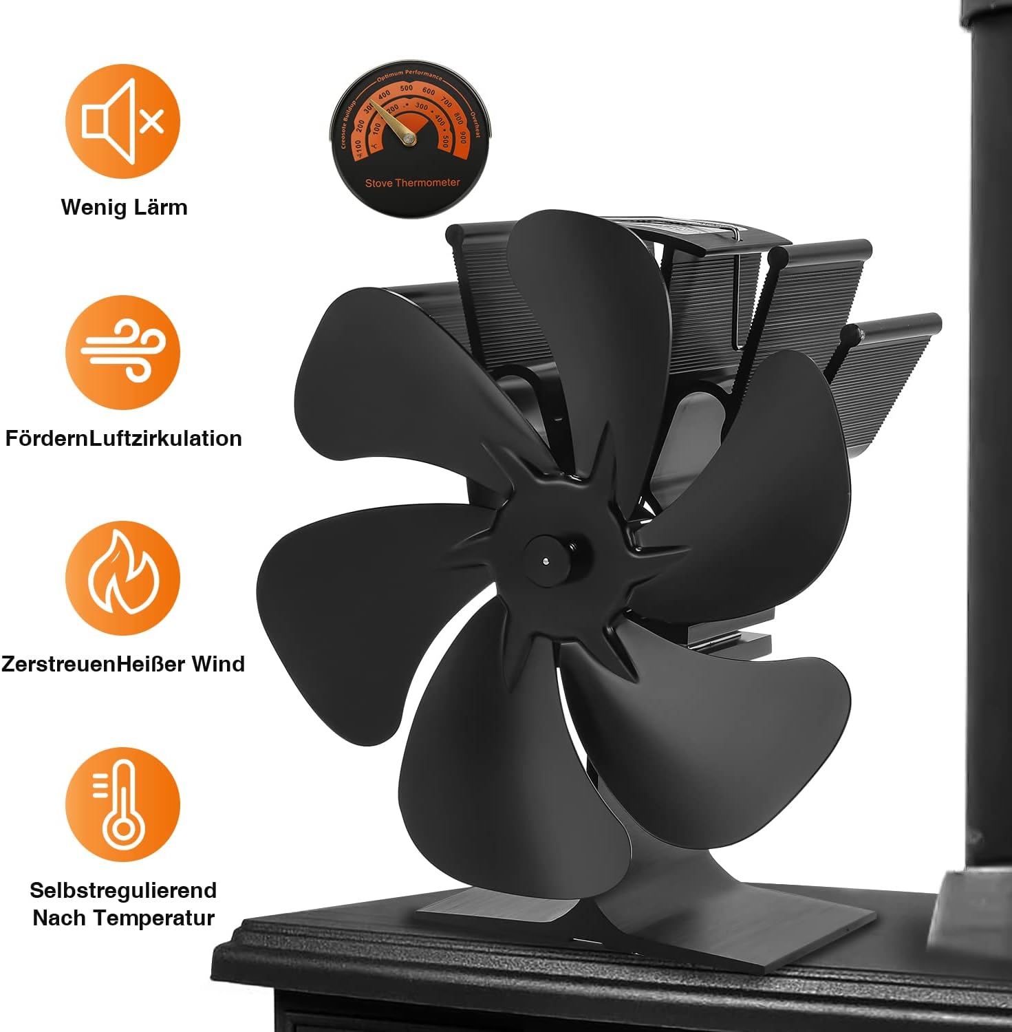 - đ§€UMWELTFREUNDLICH - Der Kaminventilator arbeitet ohne Batterien oder Stromversorgung. Er erzeugt Energie durch die vom Kamin abgegebene WĂ€rme. Der Ofenventilator arbeitet automatisch mit der Ofentemperatur zwischen 50 - 350 ° C.