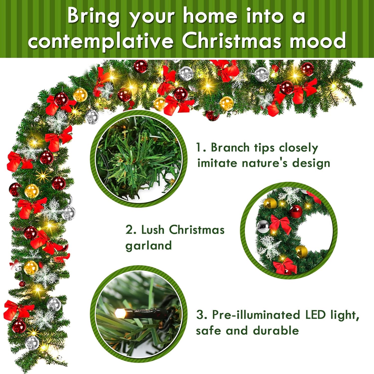- 🎄【DIY-Montage】Diese Weihnachtsgirlande hat eine Dichte von 320T, was dichter ist als andere Produkte. Die einzelnen Zweige lassen sich ganz nach Ihren Wünschen verbiegen. Sie Ihrer Fantasie freien Lauf lassen und an der gewünschten Stelle anordnen und in die gewünschte Form bringen.