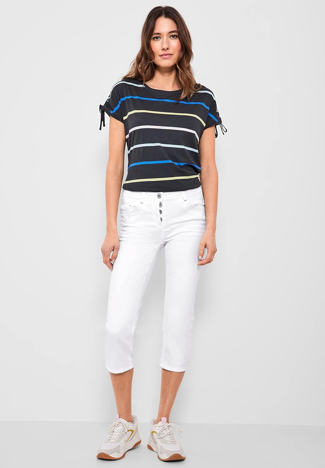 PRODUKTBESCHREIBUNGEN Eine CECIL Jeans ist wie Ihre neue beste Freundin – für jeden Spass zu haben, stets bequem und schmeichelnd. Sie sind wahre Allrounder und aus keinem Kleiderschrank mehr wegzudenken – ob als Skinny Jeans, im Loose Fit, mit High oder Mid Rise Bundhöhe, Cropped in 7/8-oder 3/4-Länge, im Used Look, als Boyfriend Jeans, oder mit Allover-Print. CECIL Jeans können viel und sind dabei herrlich unkompliziert. Finden Sie unter unseren bekannten Styles wie Toronto, Scarlett oder Charlize den passenden Fit, der Sie perfekt in Szene setzt und zu Ihrer Persönlichkeit passt. Egal ob im Sommer zum T-Shirt, modisch zur Printbluse oder lässig zum Blazer - ständig erleben unsere Jeans neue Trend-Updates und lassen sich stets vielseitig kombinieren. Ein gern gesehener Trend Klassiker ist hierbei die moderne High Waist Jeans, die mit ihrem hohen Bund an der Hüfte und an der Taille schmal sitzt und somit optisch jeder Silhouette schmeichelt. Dank elastischer Qualitäten sind nicht nur diese, sondern alle unsere CECIL Denims zudem äusserst bequem und bieten einen fantastischen Tragekomfort– lassen sich von Ihrer neuen Lieblingsjeans überzeugen!