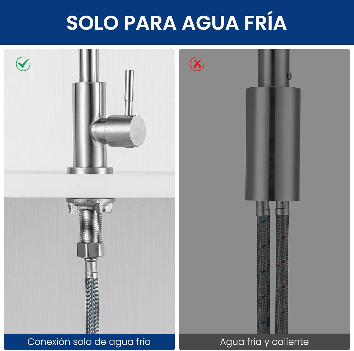 - Einfache Kaltwasserausführung: Bei diesem Produkt handelt es sich um eine Kaltwasserarmatur mit einem einzigen Schlauchanschluss, die sich für die Installation in Bereichen eignet, in denen kein Warmwasser benötigt wird, wie z. B. in Küchen,
