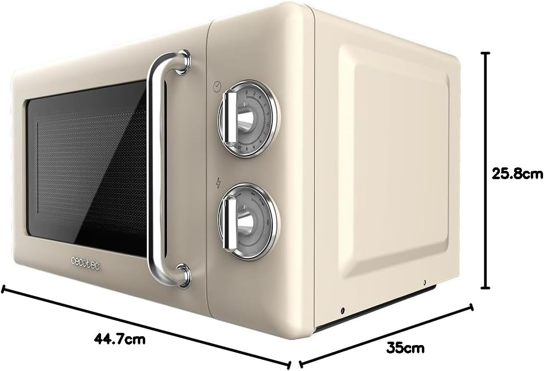 - Mechanische Mikrowelle mit 20 Liter Fassungsvermögen mit 700 W Leistung und 6 Leistungsstufen.