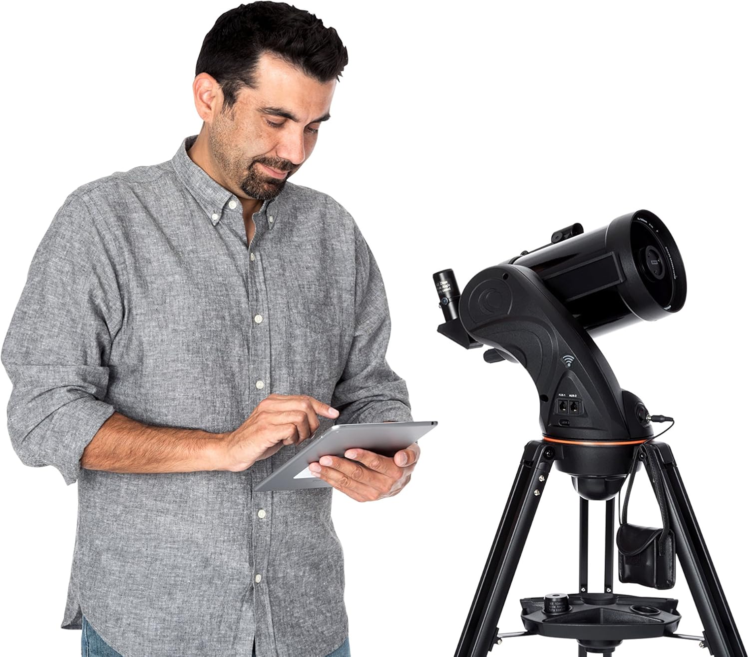 - Steuern Sie Ihr Teleskop über integriertes WLAN über die kostenlose Celestron SkyPortal App für iPhone, iPad und Android-Geräte.