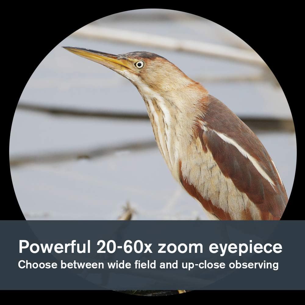 - KLARE BEOBACHTUNG: Mit einem 45° Blickwinkel, vielseitigen 20- bis 60-faches Zoom-Okular und hervorragenden vollvergüteten Linsen für erhöhte Lichtübertragung und helle, scharfe Bilder.