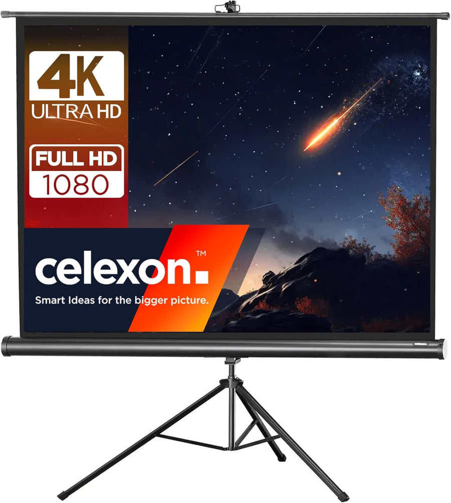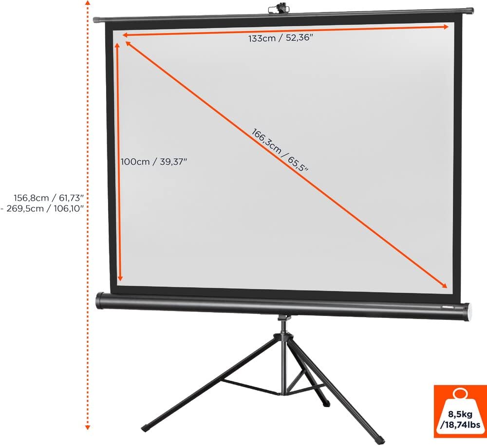 - celexon Economy Stativleinwand - sichtbare Projektionsfläche: 133x100 cm - Gehäuseabmessungen (B x Ø): 145,2 x 7 cm - Gewicht: 8,5 kg