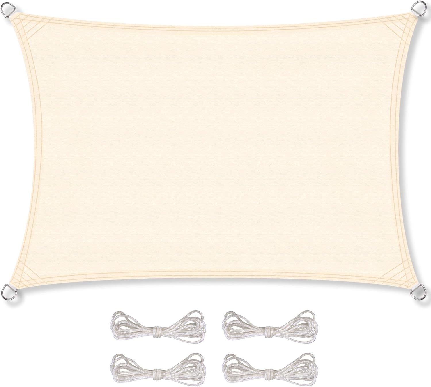 - 1x Sonnenschutzsegel wind- und wasserabweisend (PES), Farbe: creme-weiss, Rechteck 2,5 x 3 m und 4x Befestigungsseile (je ca. 1,5m). 5-fach quer vernähte Edelstahlösen an den Ecken
