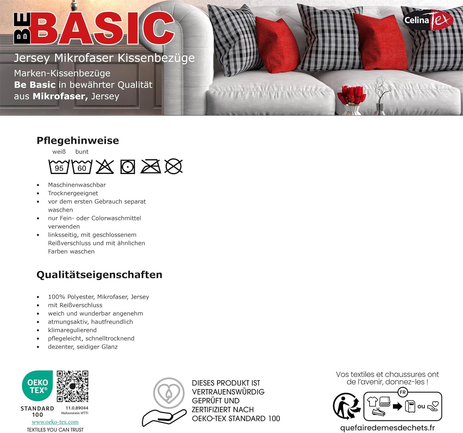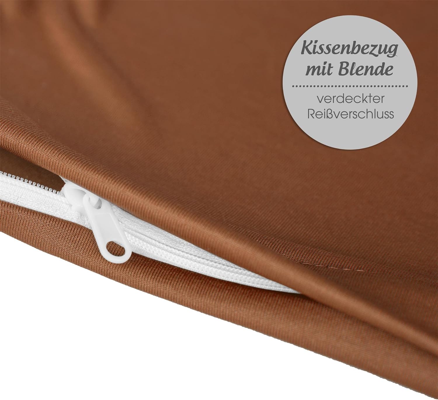 - Kissenhülle aus 100% Polyester, atmungsaktive Microfaser, angenehm weicher Jersey Qualität mit einem Tuchgewicht von ca. 150 - 155 g/qm. Die Hüllen tragen die Kennzeichnung Oeko-Tex Standard 100