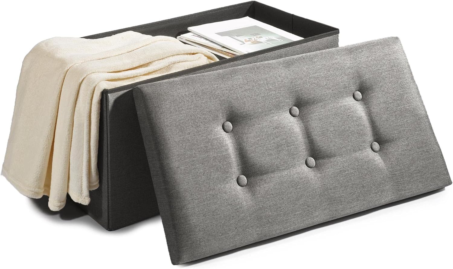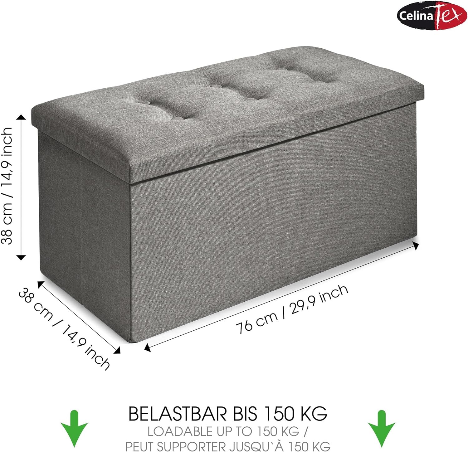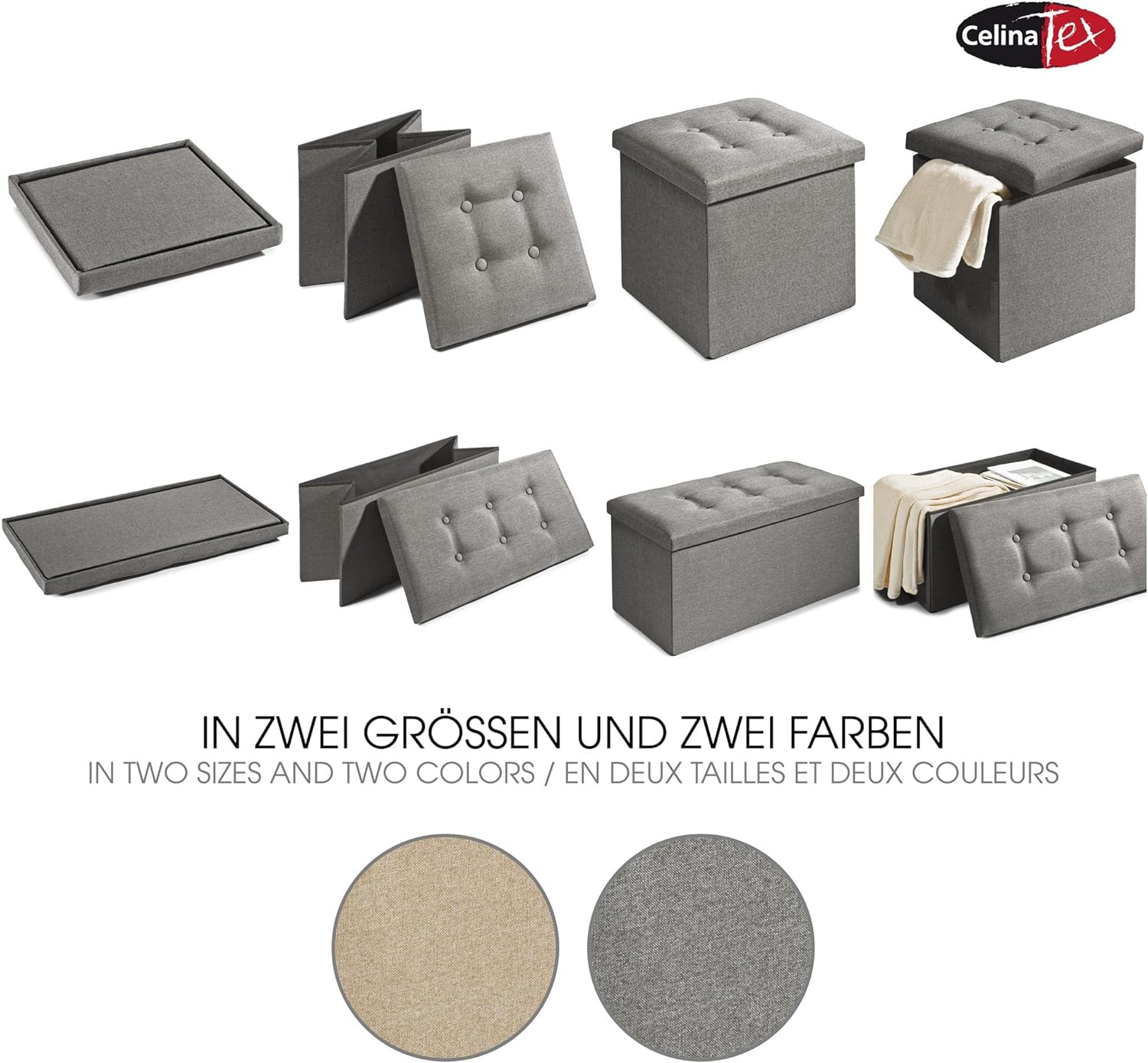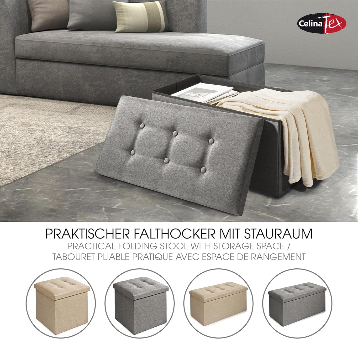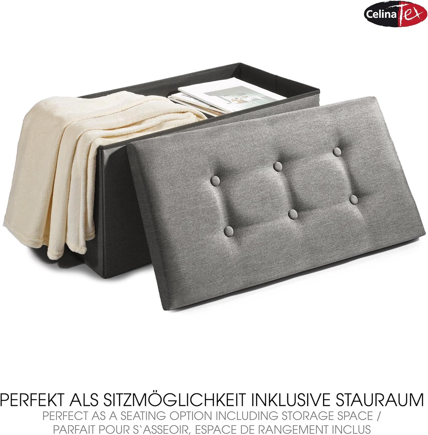 - MIT POLSTER: CelinaTex Falthocker mit Stauraum, zeitloses Design für jeden Einrichtungsstil, gepolsterte Sitzfläche mit Zierknöpfen. Geräumige Aufbewahrungsbox mit Deckel, Stauraum und Sitzgelegenheit in einem