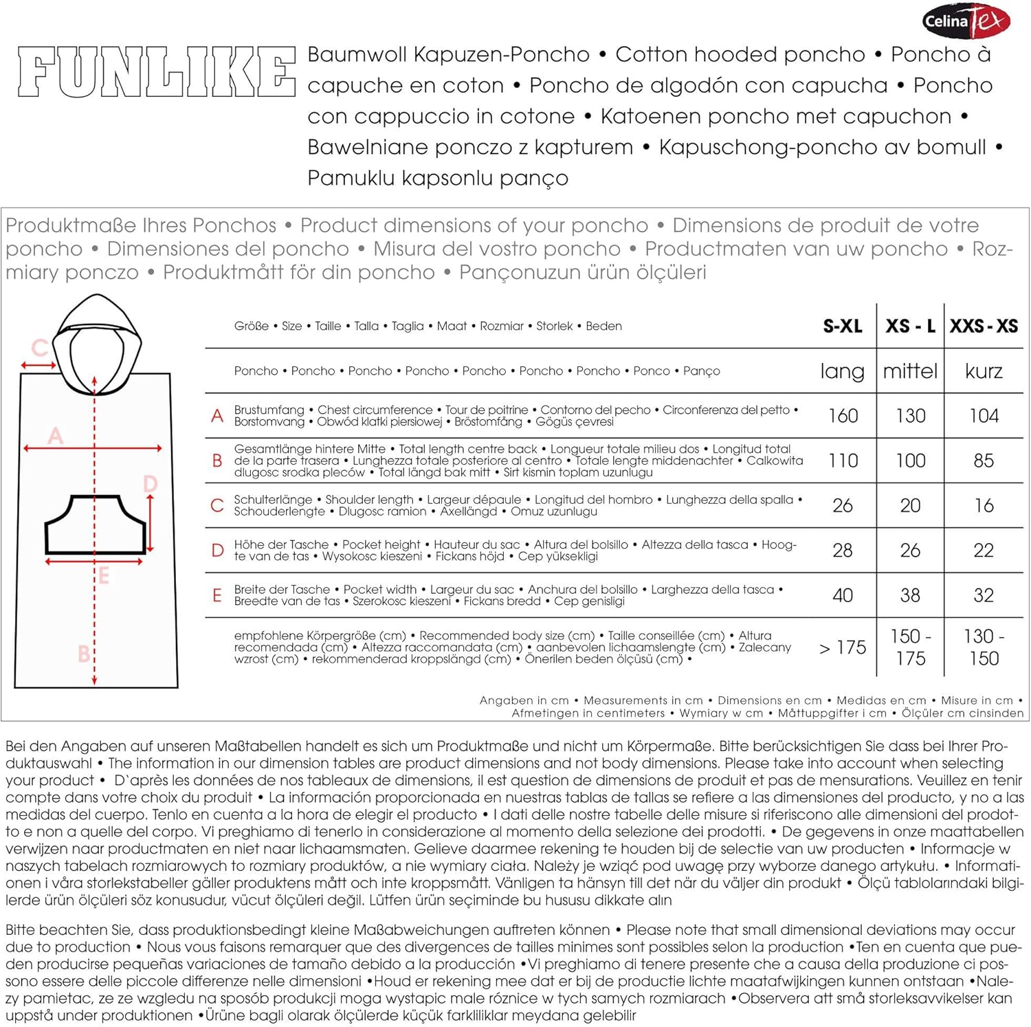 CelinaTex Funlike Poncho mittel 65 x 100 cm anthrazit Baumwolle Badeponcho Frottee Surfponcho Kapuze