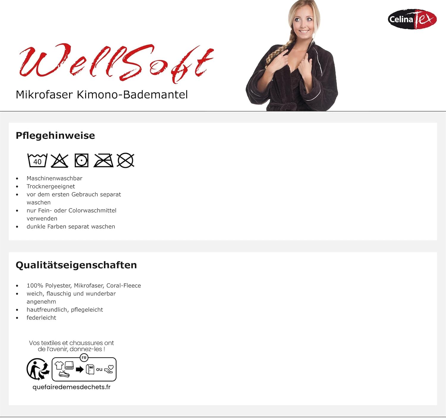 - unser CelinaTex Mantel ist auch perfekt für einen Wellness-Tag, zum Relaxen am Pool oder auf dem Sofa ein tolles flauschiges Must-Have. Bitte beachten Sie unsere Masstabelle links unter den Bildern