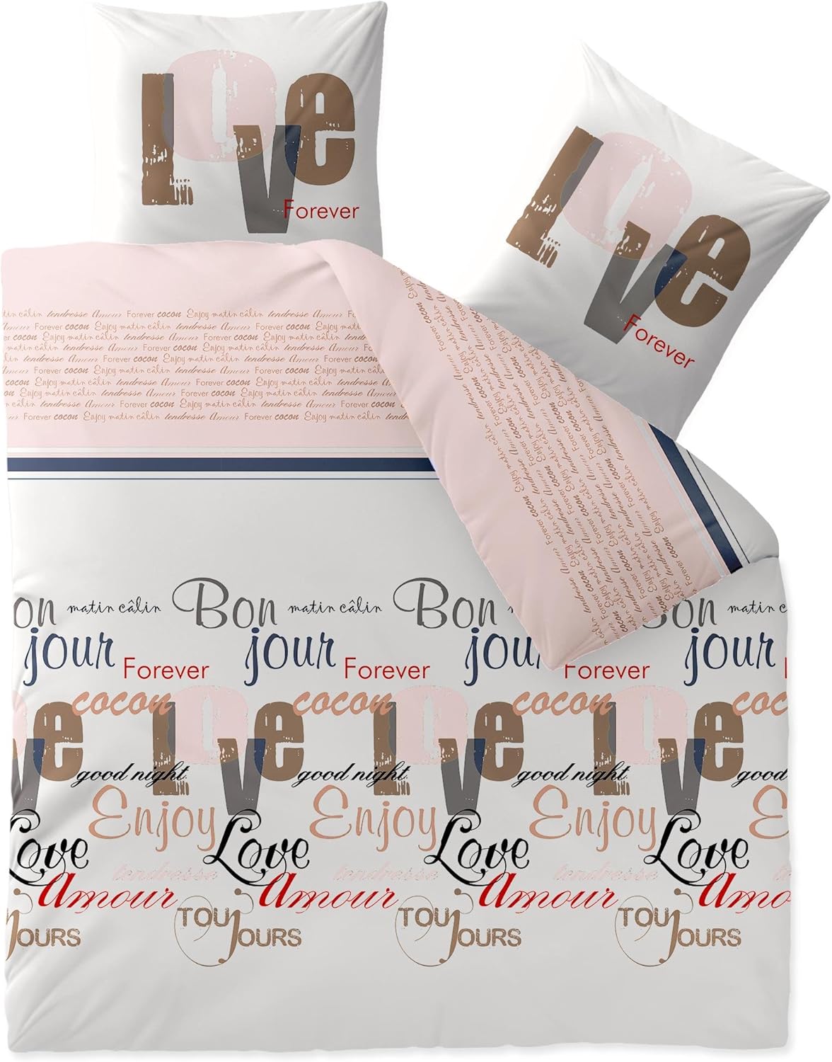 CelinaTex Touchme Biber Bettwäsche 200 x 200 cm 3teilig Baumwolle Bettbezug Jana Wörter Streifen wei