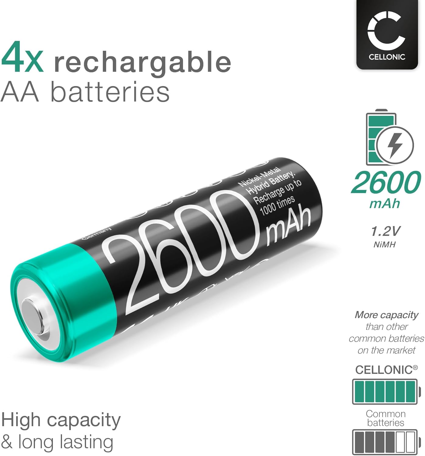 - HOHE KAPAZITÄT UND LANGE LAUFZEITEN – Mit der hohen Kapazität von 4x2600mAh liefert dieser Hochleistungsakku in jeder Situation die nötige Energie. Ersatz für Ihren Originalakku