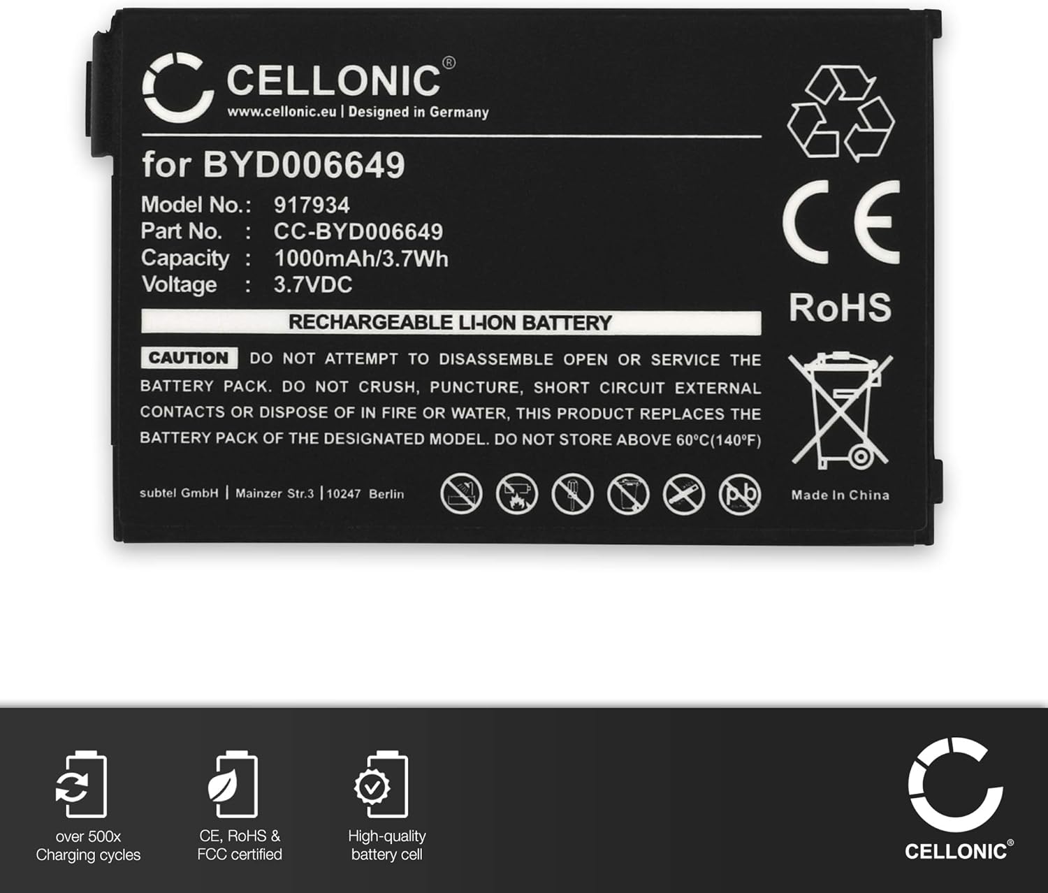 - HOHE KAPAZITÄT UND LANGE LAUFZEITEN – Mit der hohen Kapazität von 1000mAh liefert dieser Hochleistungsakku in jeder Situation die nötige Energie. Ersatz für Ihren BYD006649,BYD001743,BT298555 Originalakku