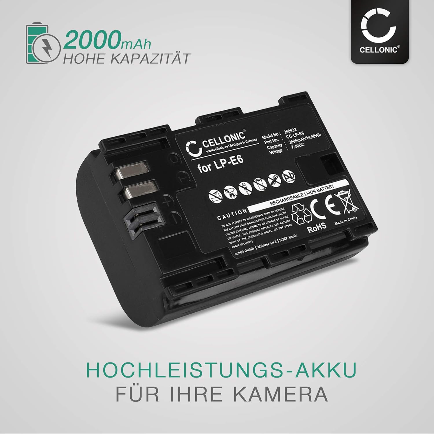 - MEHR FOTOS UND LÄNGERE VIDEOS - Mit der hohen Kapazität von 2000mAh liefert der Zusatzakku lange Laufzeiten und die nötige Energie für ausgedehnte Fotoshootings und längere Videodrehs. Ersetzt Ihren LP-E6 LP-E6N Originalakku