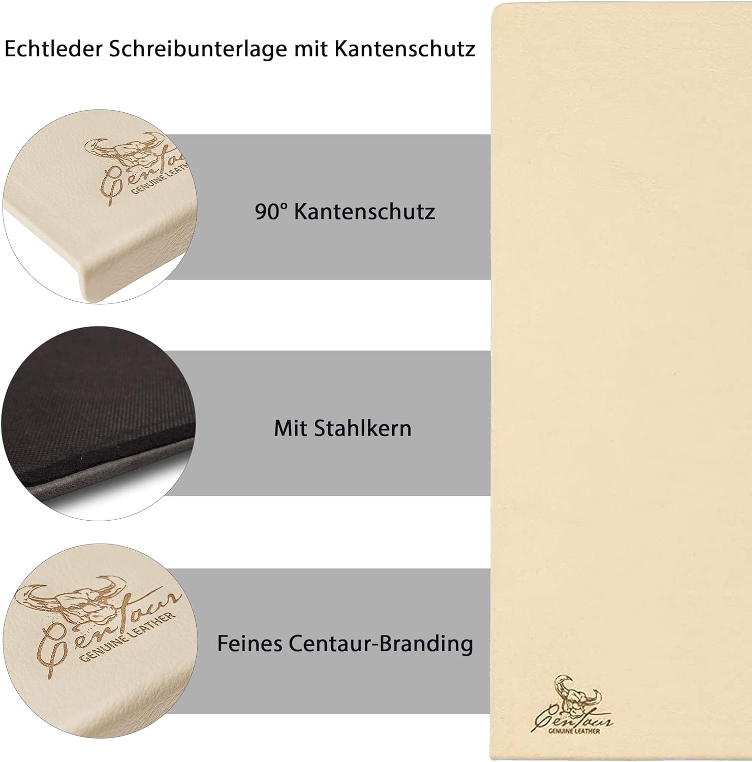Centaur - Hochwertige Leder Schreibtischunterlage mit 90° Kantenschutz - Champagner Beige 55x80 cm -
