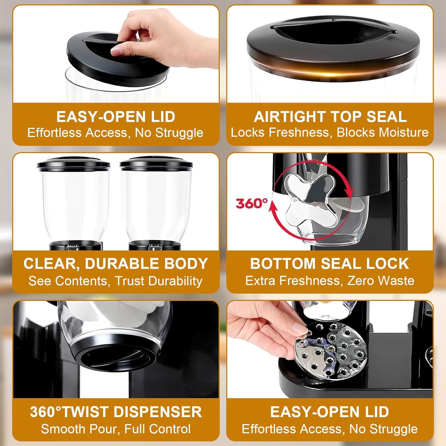 - Frische Erhalten: Unsere Müslispender sind mit doppelten lufttighten Deckeln (oben und unten) ausgestattet, die eine sichere Dichtung bilden, um Feuchtigkeit, Schädlinge und Gerüche abzuwehren. Ihre Müslis bleiben perfekt knusprig und frisch, sodass