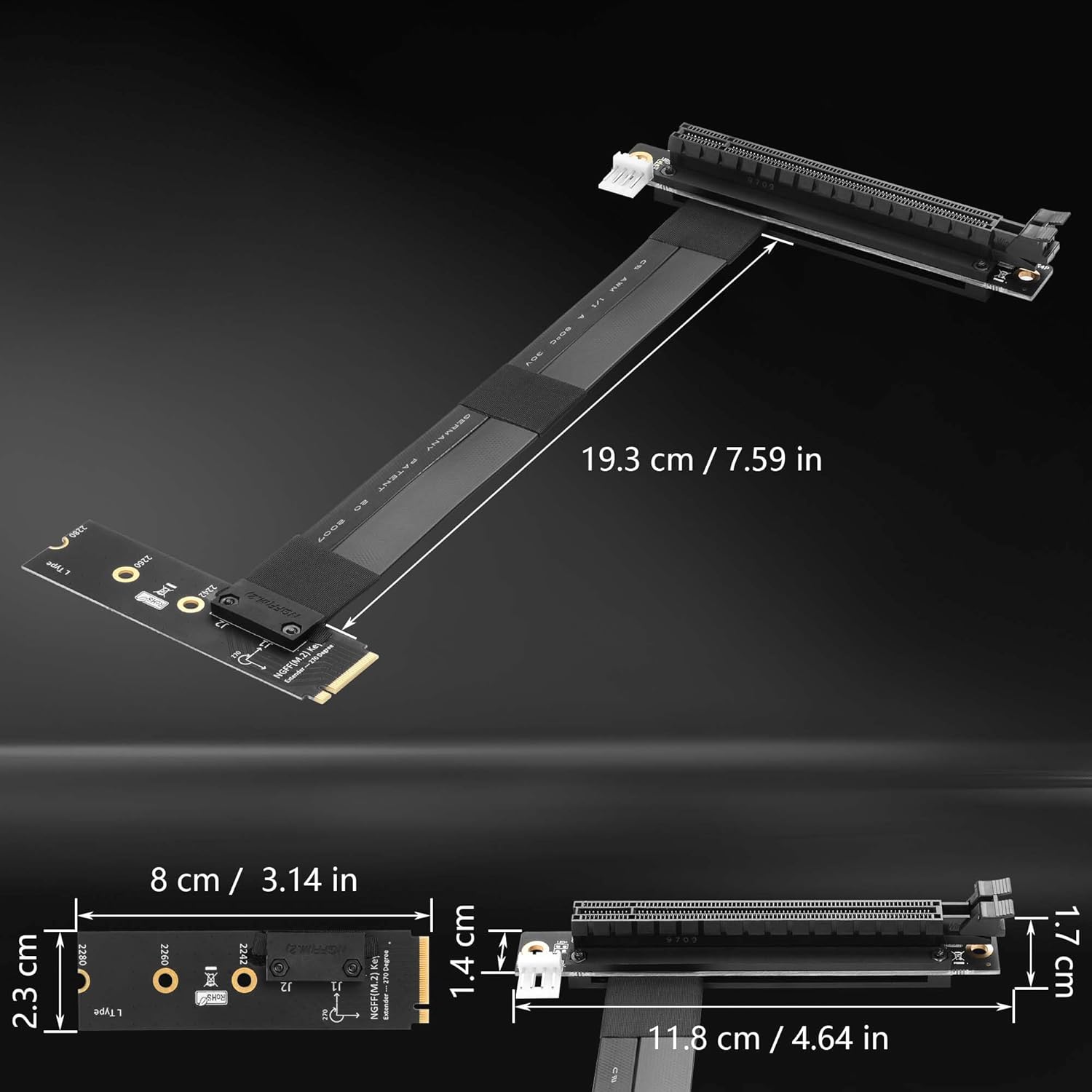 - M.2 auf PCI-E x16 Konvertierungskarte, sodass PCI-e 16X Grafikkarte im M2 M-Key Steckplatz installiert werden kann.