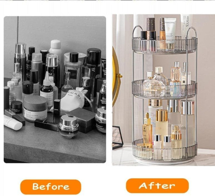 - 【360° drehbares Design】: Der drehende Make-up-Organizer bricht Platzeinschränkungen, macht das Hineinlegen oder Herausnehmen von Gegenständen bequemer, Sie müssen den Organizer nicht häufig verschieben.