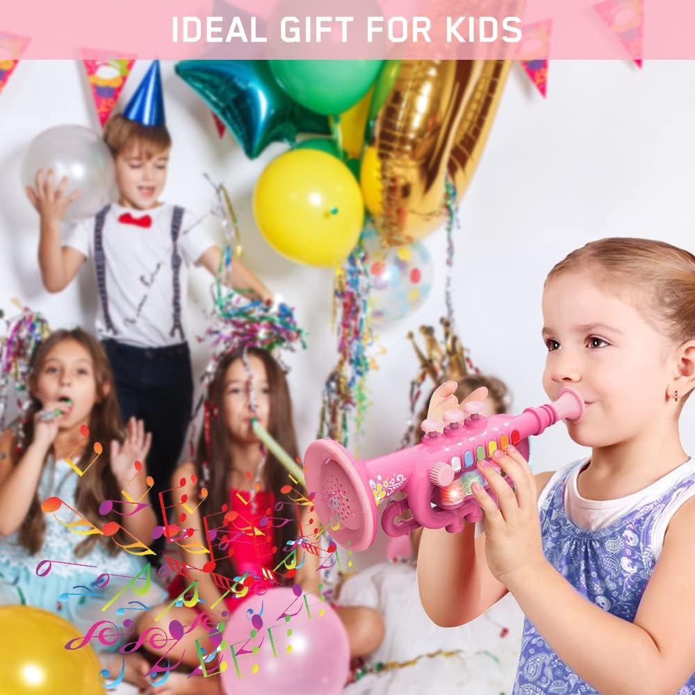 - 【Begleitet von Lichtern und einstellbarer Lautstärke】 Kindertrompete mit bunten LED-Blinklichtern und 5 Lautstärken, die mit dem Klangrhythmus blinken. Sie können die gewünschte Lautstärke einstellen. Es macht Spass, nachts zu spielen. Das Licht
