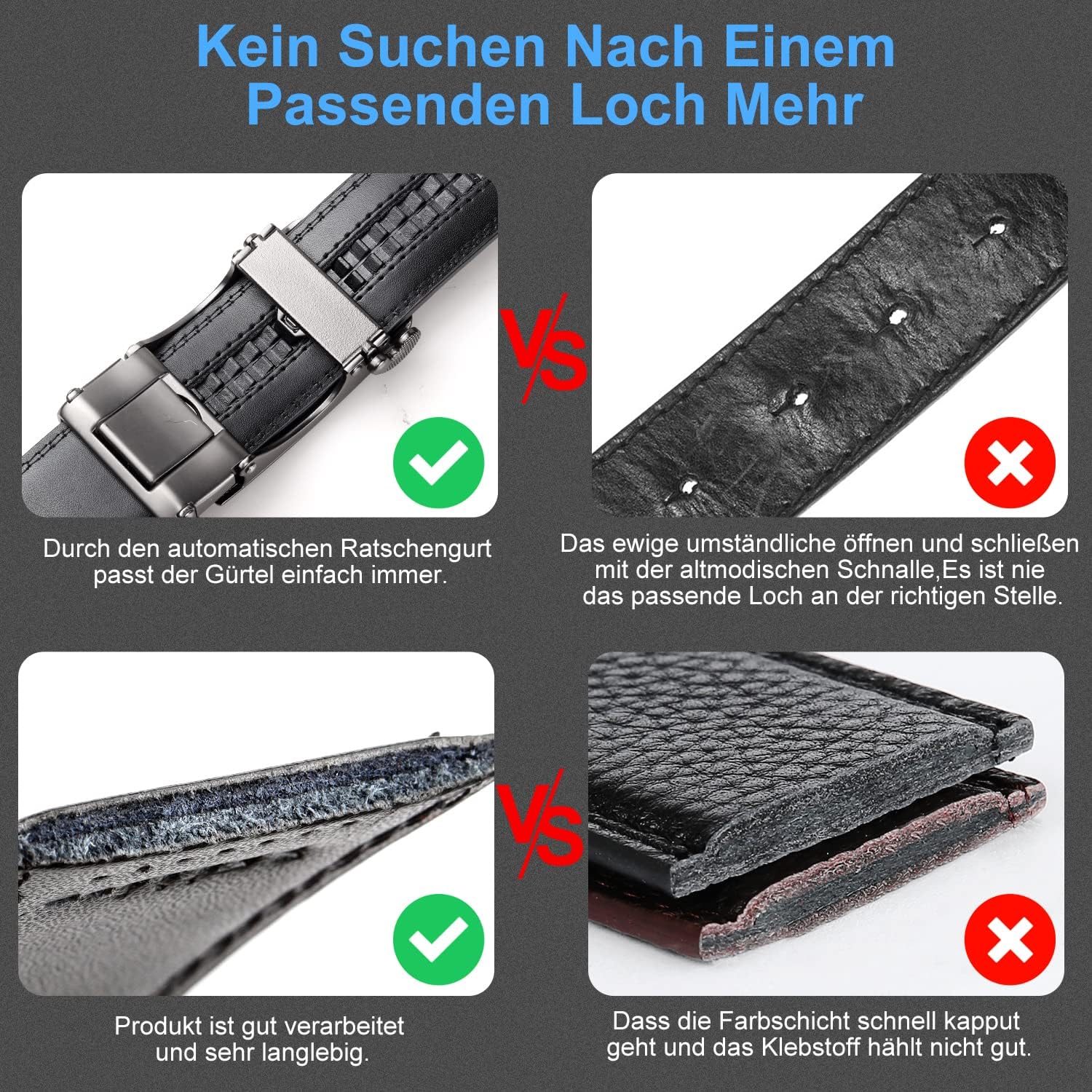 - 【Haltbarkeit】Gürtel Herren Hergestellt aus Hochwertigem Leder;Die Kanten sind mit einer Doppelnaht sehr sauber vernäht.Schnalle Zink legiert mit hochwertiger Beschichtung für Kratzfestigkeit. 2 Stücke Gürtel, die zu jedem Ihrer Outfits