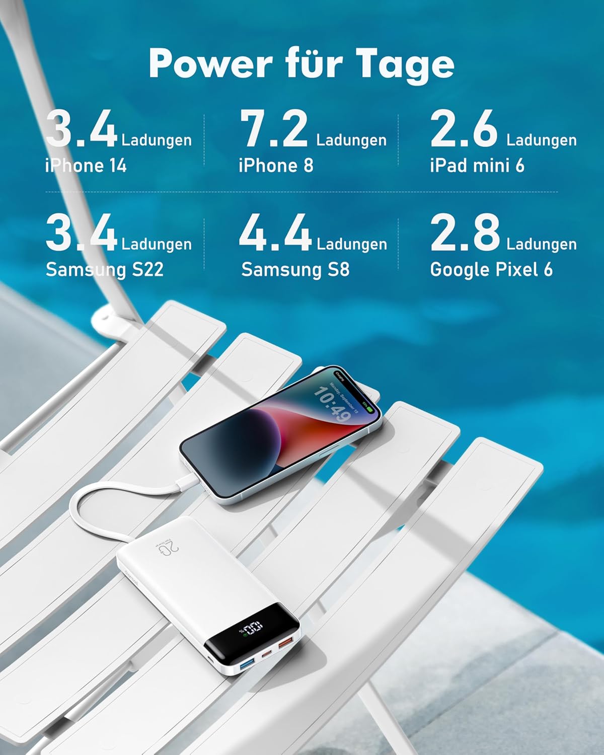 • 🔋Grosse Kapazität mit dĂĽnnem Körper: Gewicht 340 g, Dicke nur 19 mm, leicht und tragbar. Eine Kapazität von 20000 mAh reicht aus, um das Laden mit Familienmitgliedern oder Partnern zu teilen.