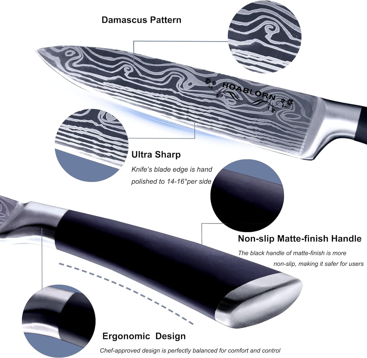 - ChefHoablorn ️Küchenmesser Sets oder perfekte Geschenke?: Jedes Hoablorn Messer ist sorgfältig geschmiedet, auch der hölzerne Messerblock wird geduldig gebaut. Es eignet sich nicht nur für gewöhnliche Familienküchen, sondern auch für Köche.