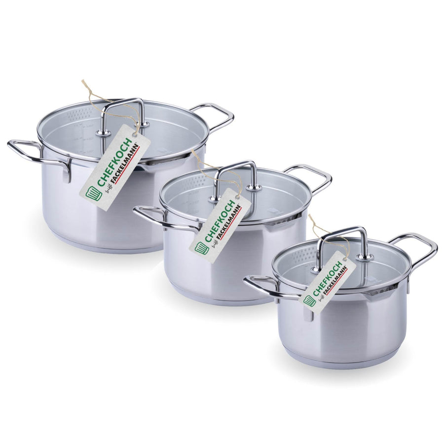 - VIELSEITIG EINSETZBAR – Geeignet für alle Herdarten, inklusive Induktion, und dank der Backofenfestigkeit vielseitig in der Küche einsetzbar – nach dem Gebrauch können die Edelstahltöpfe ganz einfach in der Spülmaschine gereinigt werden