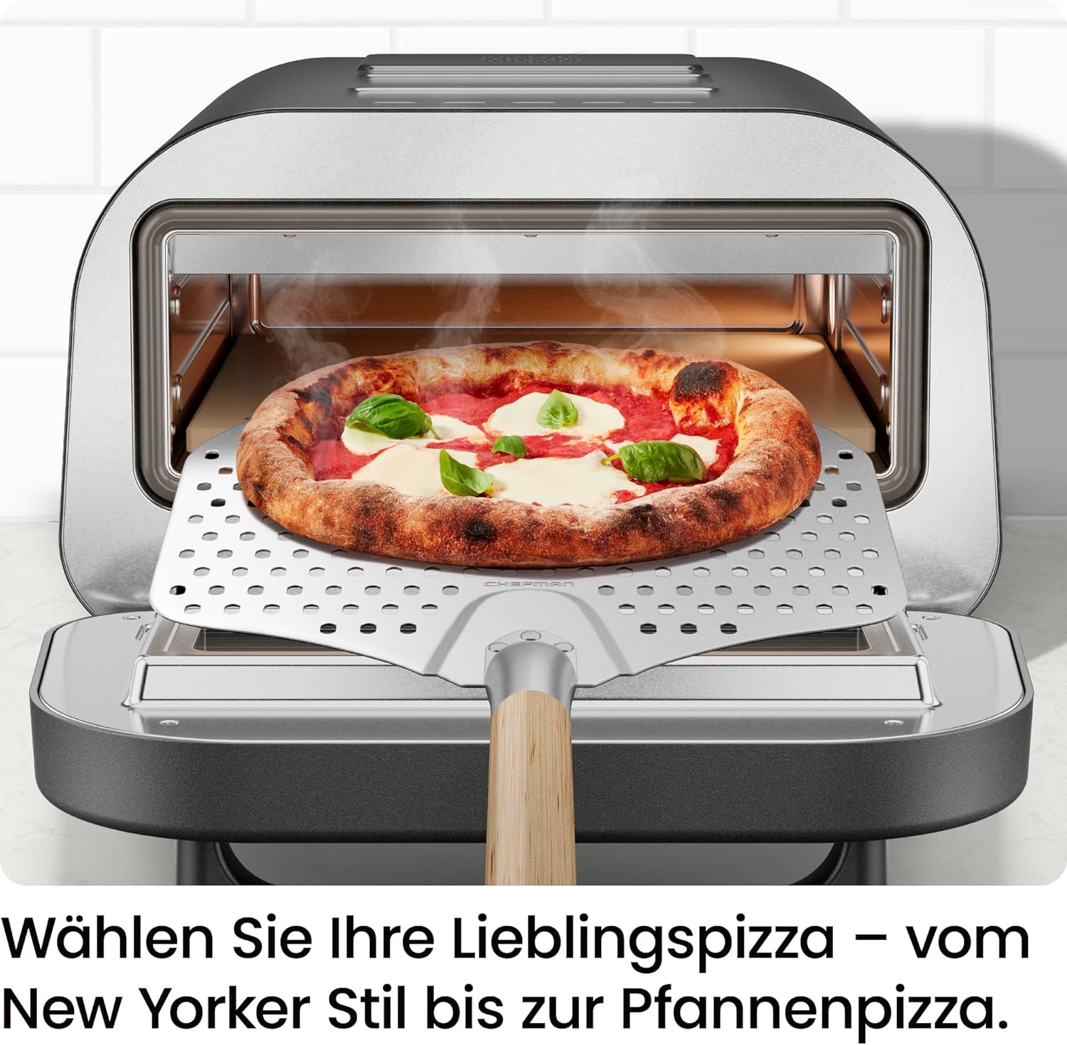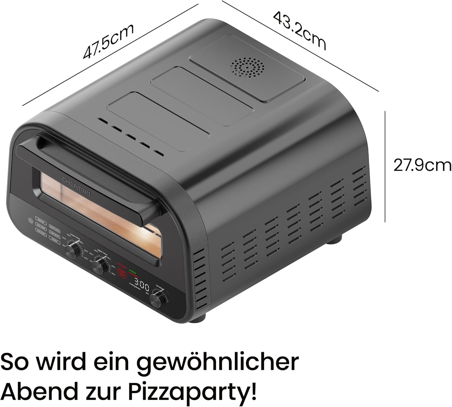 - VIELSEITIGES DESIGN - Der Chefman Pizzakocher ist perfekt für jede Küchengrösse. Das schlanke Design des Pizzaofens für den Innenbereich passt in kompakte Räume und macht gleichzeitig köstliche hausgemachte Pizza im Handumdrehen